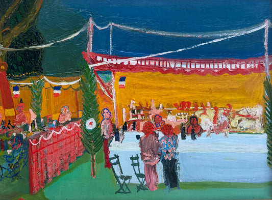 Mid Century French Garden Party Oil Painting in Gold Frame