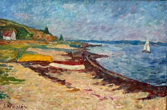 Lasse Winslow Expressionist Vivid Seascape with Sailboat Oil Painting in Gold Frame