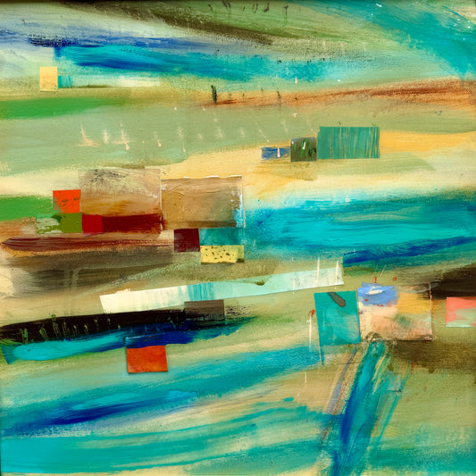 Lori-Ann Bellissimo Southampton Shores Abstract Landscape Mixed Media in Gold Frame