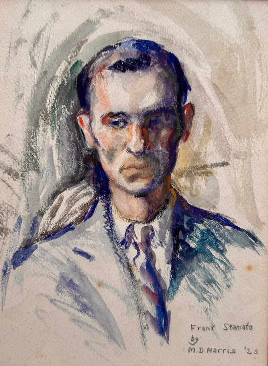 Marian D. Harris 1925 Frank Stamato Gentleman's Portrait Watercolor Painting in Gold Frame
