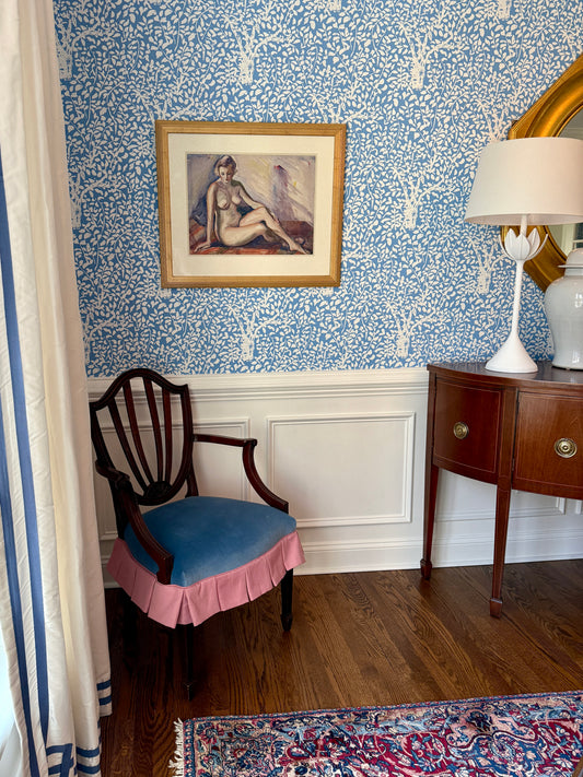 Vintage Wooded Coastal Landscape Oil Painting in Scalloped Gold Frame