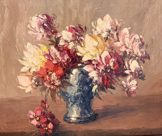 Leonid Gechtoff 1939 Flowers in the Blue Vase Still Life Oil Painting in Gold Frame