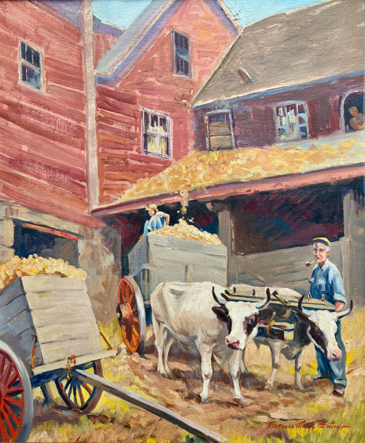 Florence Prince Ewing American Farm Scene with Cows in Wood Frame