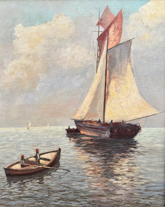 Louis Saphier Sailboats in Seascape Oil Painting in Black and Gold Frame