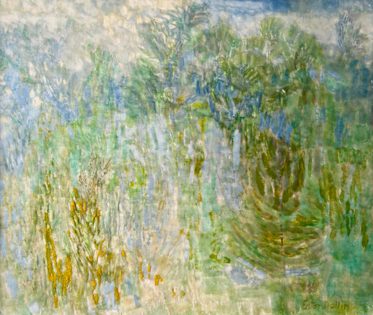 Lois Eaton Dollin June Field Encaustic Abstract Landscape Painting in Silver Gilt Frame