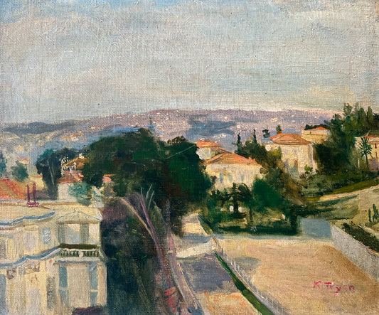 Kate Tryon 1925 Nice, France Cityscape Oil Painting in Gold Frame