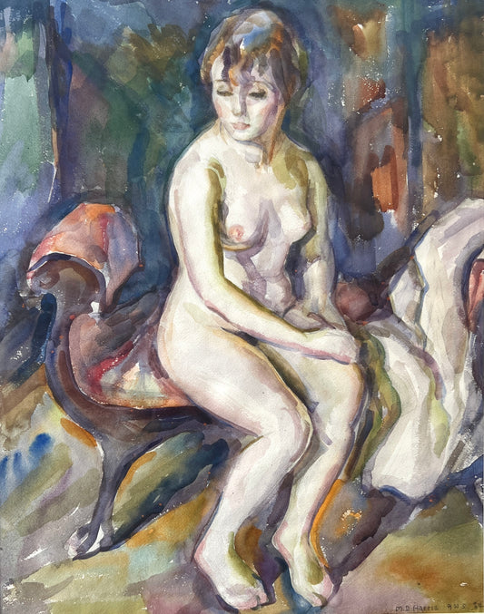 Marian D. Harris Nude Female Watercolor Portrait in Gold Frame