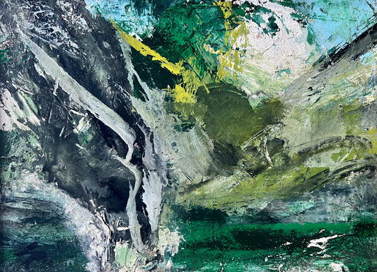 French Abstract Landscape Oil Painting from Galerie Etienne De Causans in Gold Frame