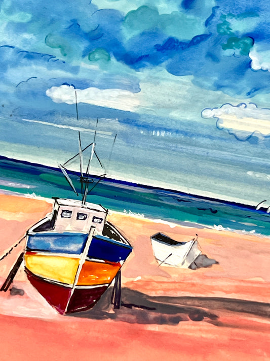 Vintage Western Cape Coastal Seascape Oil Painting in Gold Frame