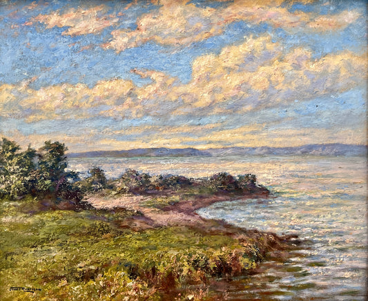 John T. Randolph Blue Skies Impressionist Coastal Landscape Oil Painting in Gold Frame