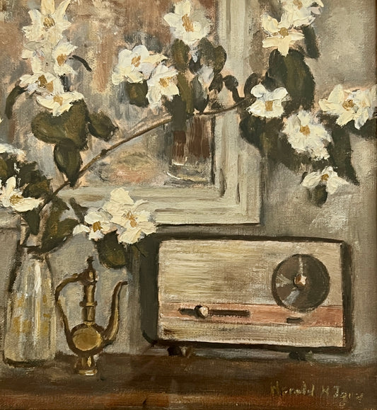 Harold Jones Early 20th Century Orange Blossom Still Life Oil Painting in Gold Frame