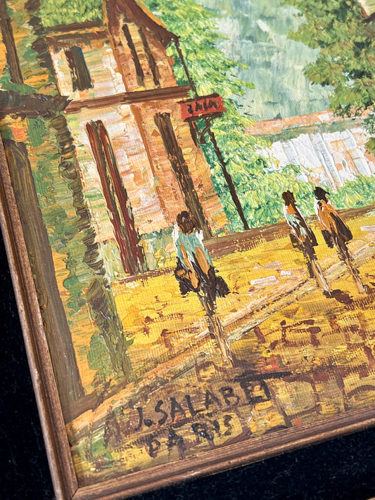 Jean Salabet (French, 1913-1995) Paris Street Scene Oil Painting in Carved Frame