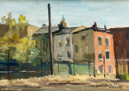 Stephen Takats Philadelphia Row Houses + Still Life Oil Painting in Wood Frame