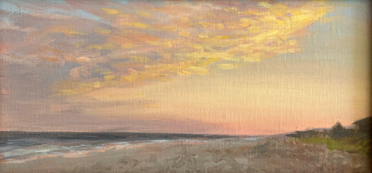 Fire Island, NY Sunset Coastal Landscape Oil Painting in Gold Frame