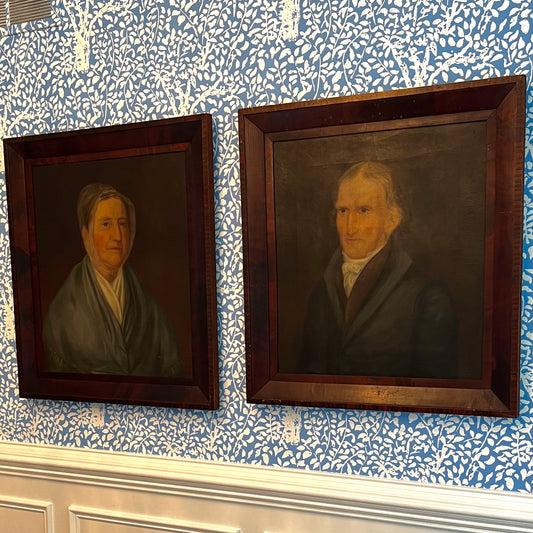 Pair of 19th Century American Husband and Wife Portrait Paintings in Original Frames