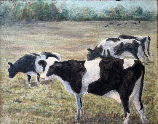 Mid Century Cow Portrait Oil Painting in Gold Frame