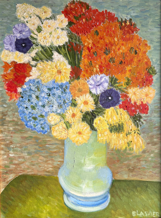 Vintage Bouquet Still Life Oil Painting in Gold Frame