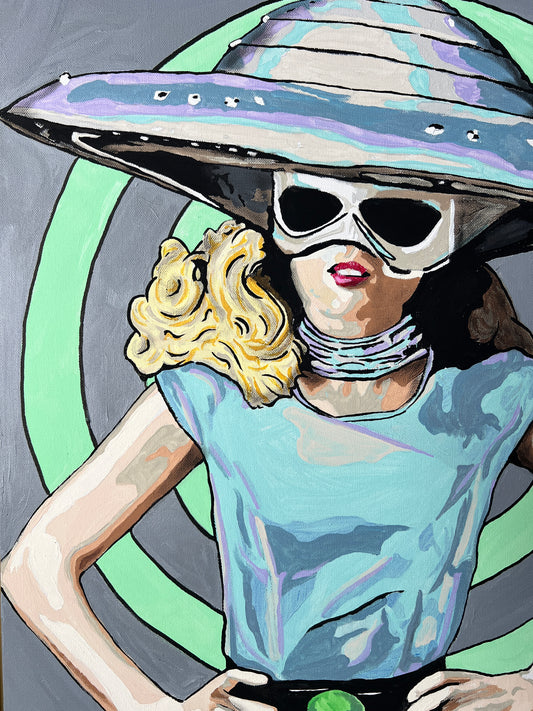 Mars Needs Women Pop Art Portrait Painting of Spacewoman in Gold Floater Frame