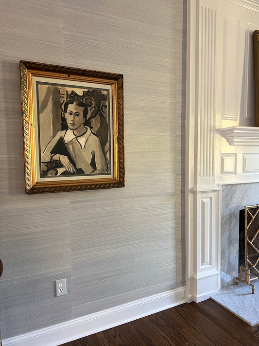 Elnora "Nora" Hauser Tonal Watercolor Portrait of Young Girl in Antique Gold Frame