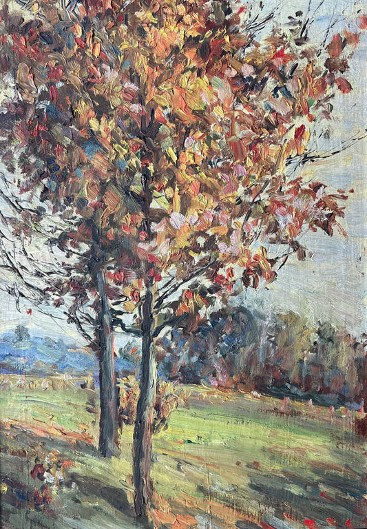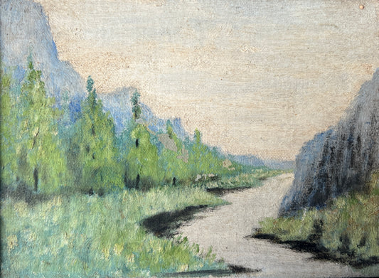 Vintage American Impressionist Landscape Oil Painting in Carved Gold Frame