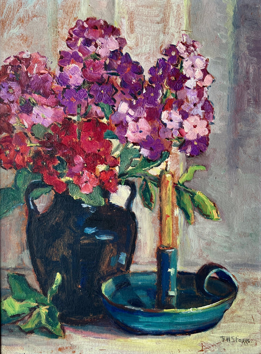 Early 20th Century Hydrangea and Candle Still Life Oil Painting in Gold Frame