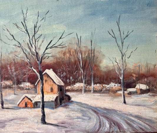 Paul A. Bloser American Winter Landscape Oil Painting in Gold Frame