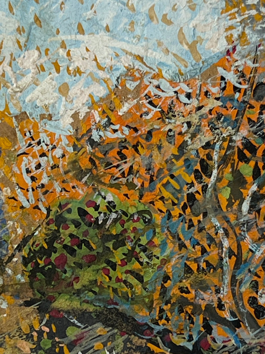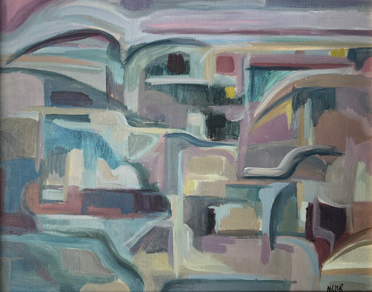 Marlene E. Miller Evening in Monteveglio Abstract Expressionist Landscape Painting in Gold Frame