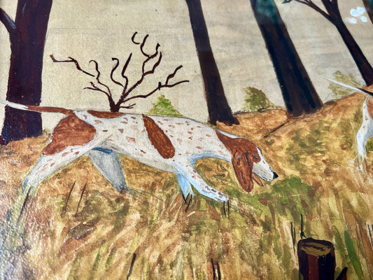 Early 20th Century Alexander Brown's Woods American Fox Hunt Hounds Oil Painting in Wood Frame