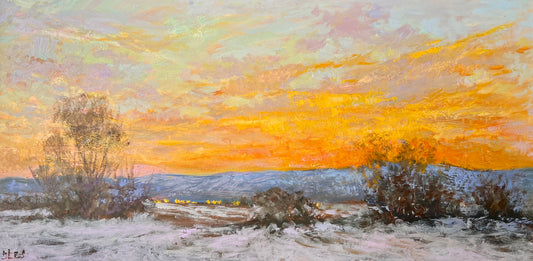 Julia Lesnichy Winter Sunset in Virginia Landscape Oil Painting in Gold Frame