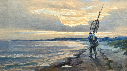 Paul Jobert (French, 1863-1942) Morning Catch Fisherman Watercolor in Gold Frame