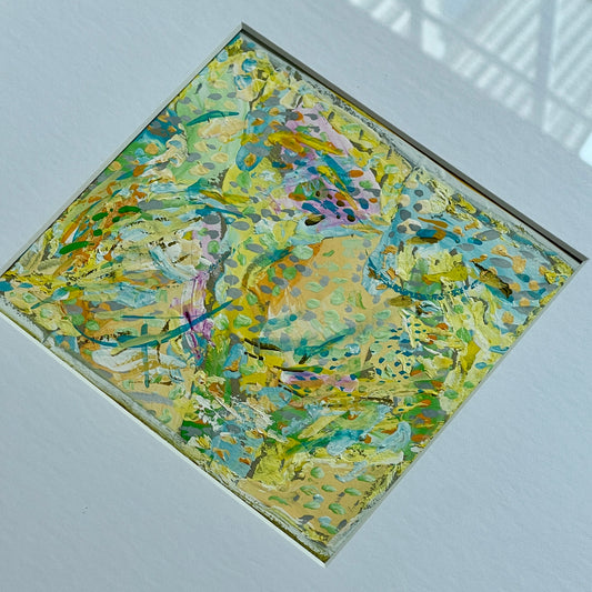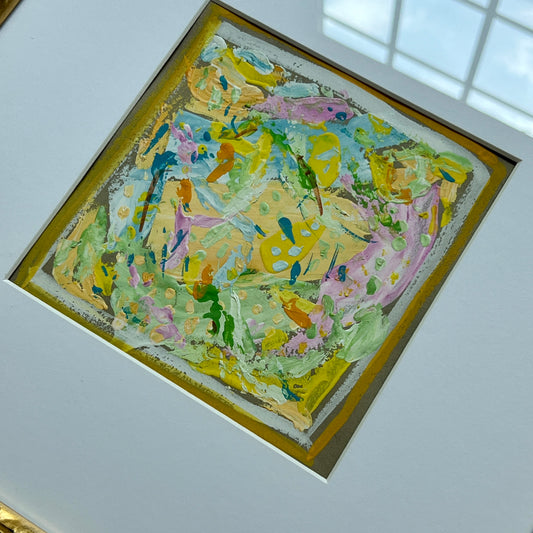 Vintage Colorful Abstract Oil Painting #8 in Light Gold Bamboo Frame