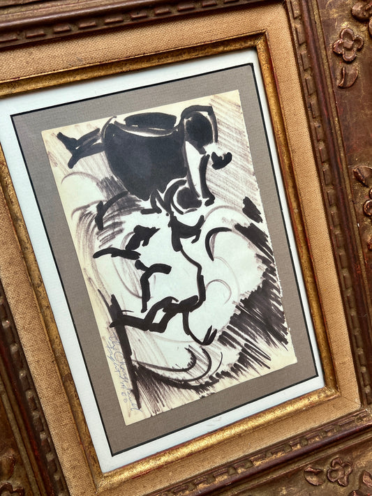 Eleanor "Nora" Hauser 1960 "The Charge: Bull Fight" Gouche in Antique Frame