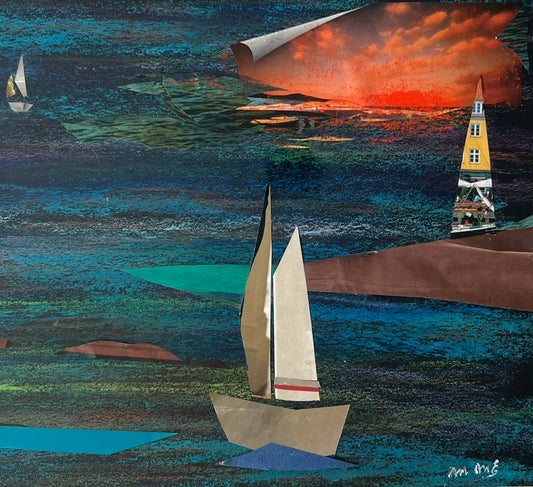 Madeleine Eyland-Legrain Fireworks "View from the Lighthouse" Mixed Media in Silver Frame