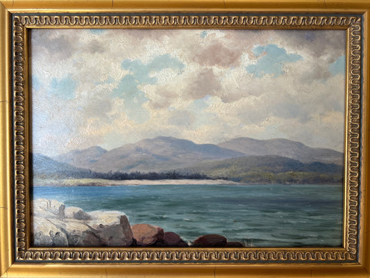 Early 20th Century American Coastal Landscape Oil Painting in Carved Gold Frame