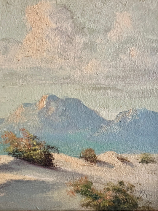 Early 20th Century American California Desert Mountain Landscape Oil Painting in Gold Frame