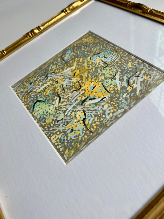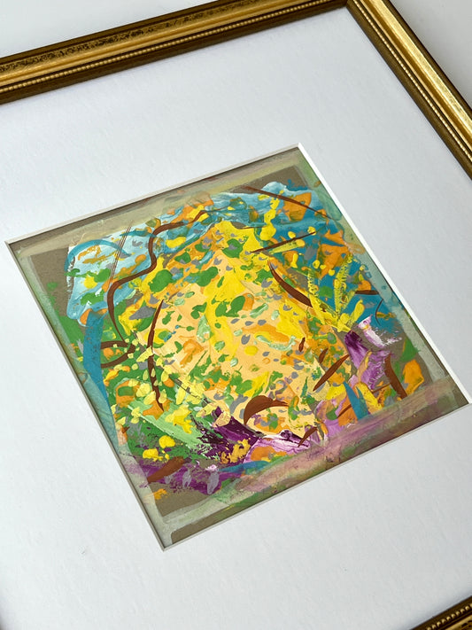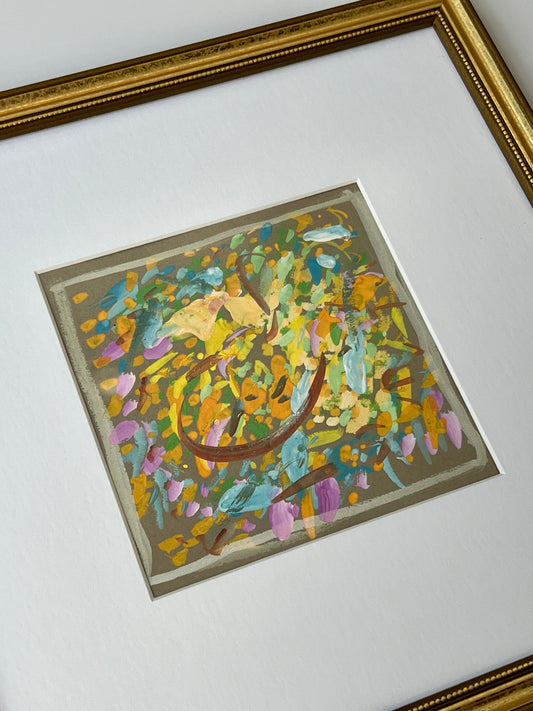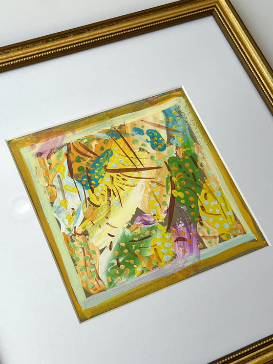 Vintage Bright Colorful Abstract Oil Painting #2 in Gold Frame