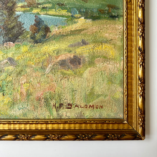 Early 20th century H.F. Salomon American Impressionist Landscape Painting in Gold Carved Frame