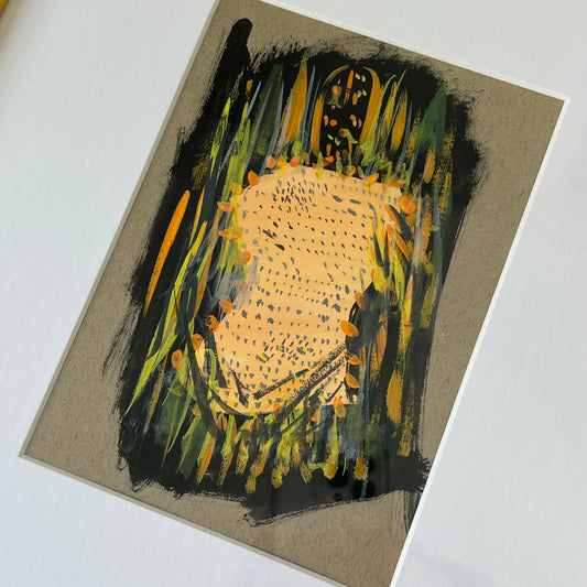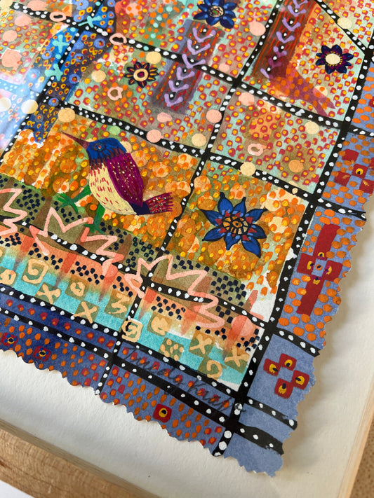 Trudy Kraft "Flora and Fauna #6" Mixed Media Geometric Birds in Natural Frame