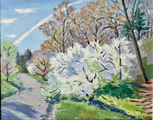 Impressionist Walk Through the Park Colorful Landscape in Gold Frame