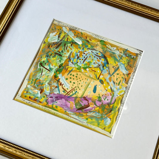 Vintage Bright Colorful Abstract Oil Painting #1 in Gold Frame