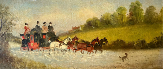 Philip H. Rideout (British, 1850-1920) Horse and Carriage Puddle Jump Oil Painting in Gold Frame