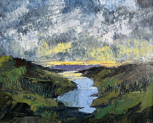 Landscape at Sunset Luminous Impasto Oil Painting in Gold Frame