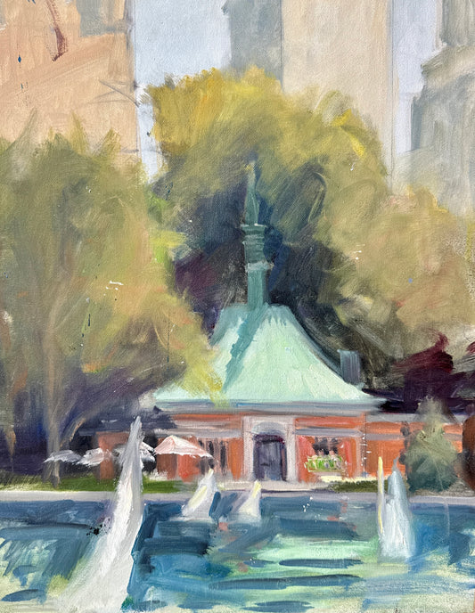 Central Park Kerbs Boathouse Model Yachts Oil Painting Study in Gold Frame
