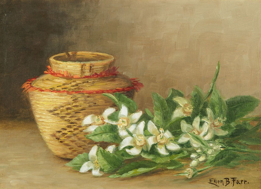 Ellen Frances Burpee Farr Early 20th Century Woven Basket Still Life Oil Painting in Antique Gold Frame