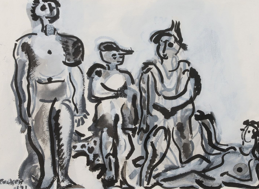 Richard Derby Tucker Figural Abstract Tonal Ink and Watercolor Group Portrait in Gold Frame