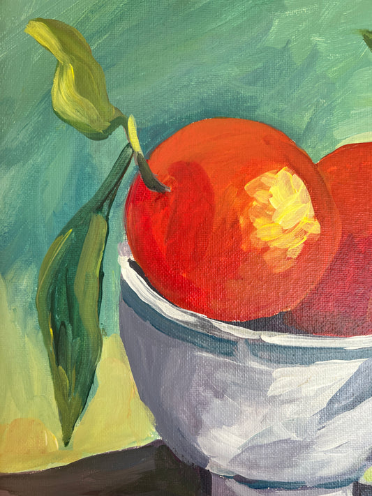 Mandarin Oranges in Blue and White Bowl Still Life in Gold Frame