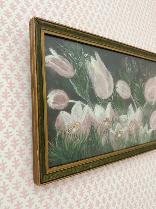 Antique Pink Tulip Garden Landscape in Green and Gold Frame