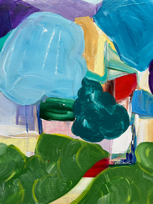 Large Lavender Haze Abstract Colorful Landscape Oil Painting in Gold Frame