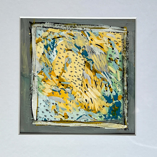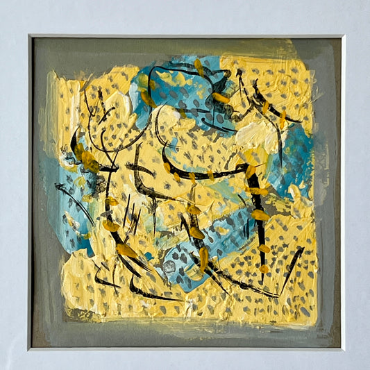 Vintage Colorful Abstract Oil Painting #6 in Light Gold Bamboo Frame