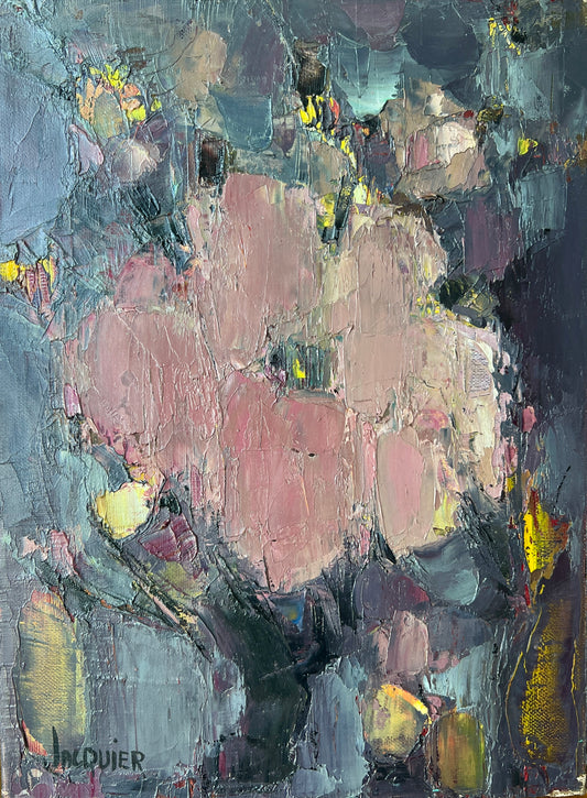 Jacqueline Jacquier (French, 1930-2020) Oil Painting Abstract Flower in Gold Floater Frame